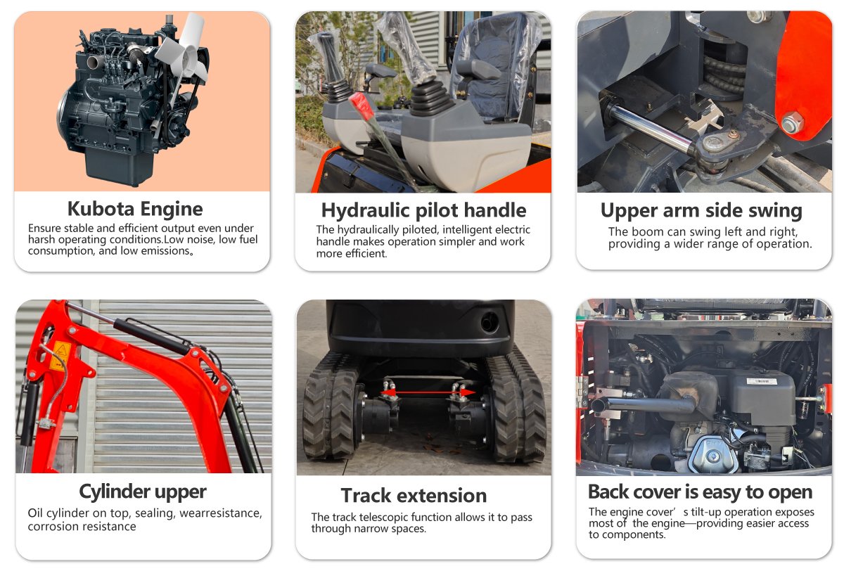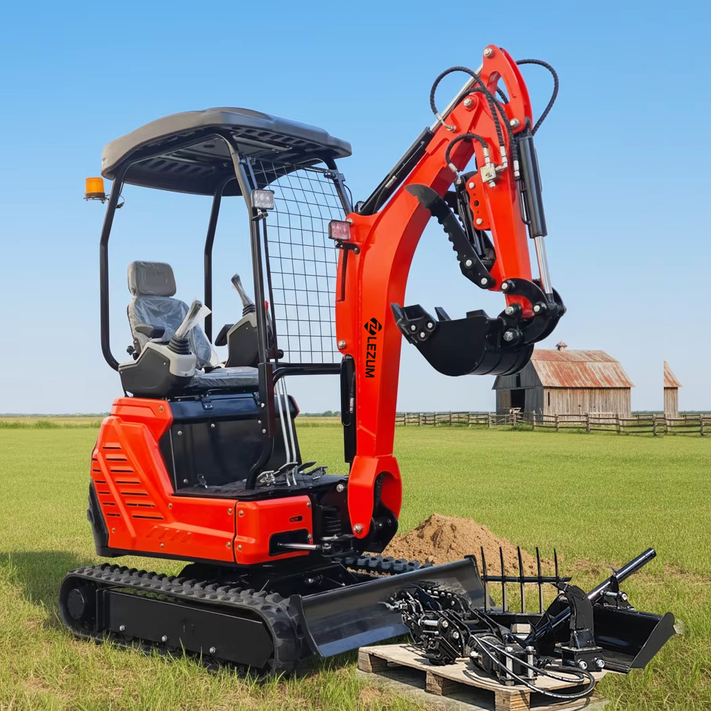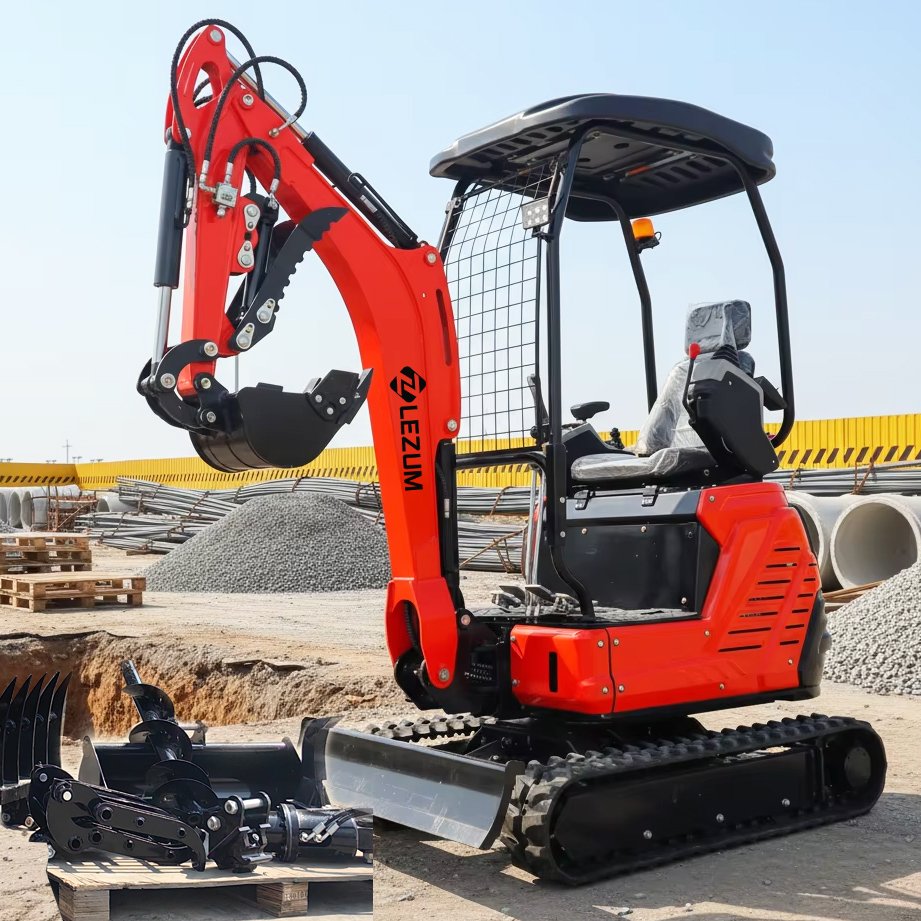The LEZUM DY18 Kubota Engine Mini Excavator offers a 1693mm digging depth and is high lighted by its Low Total Cost of Ownership (TCO). The machine is designed for easy maintenance, with centralized service points and wide-opening panels significantly reducing maintenance time. Factory direct sales bring you the most competitive pricing.